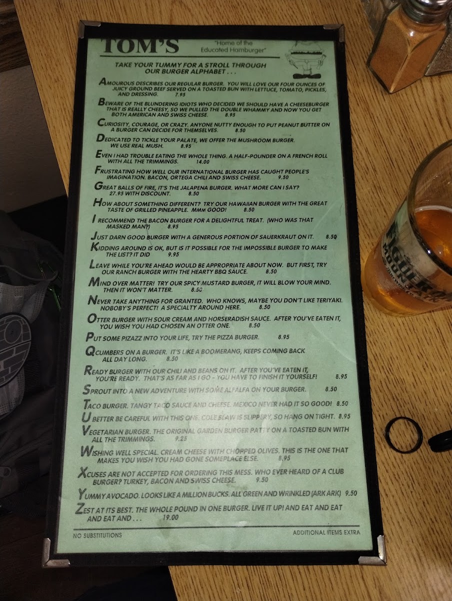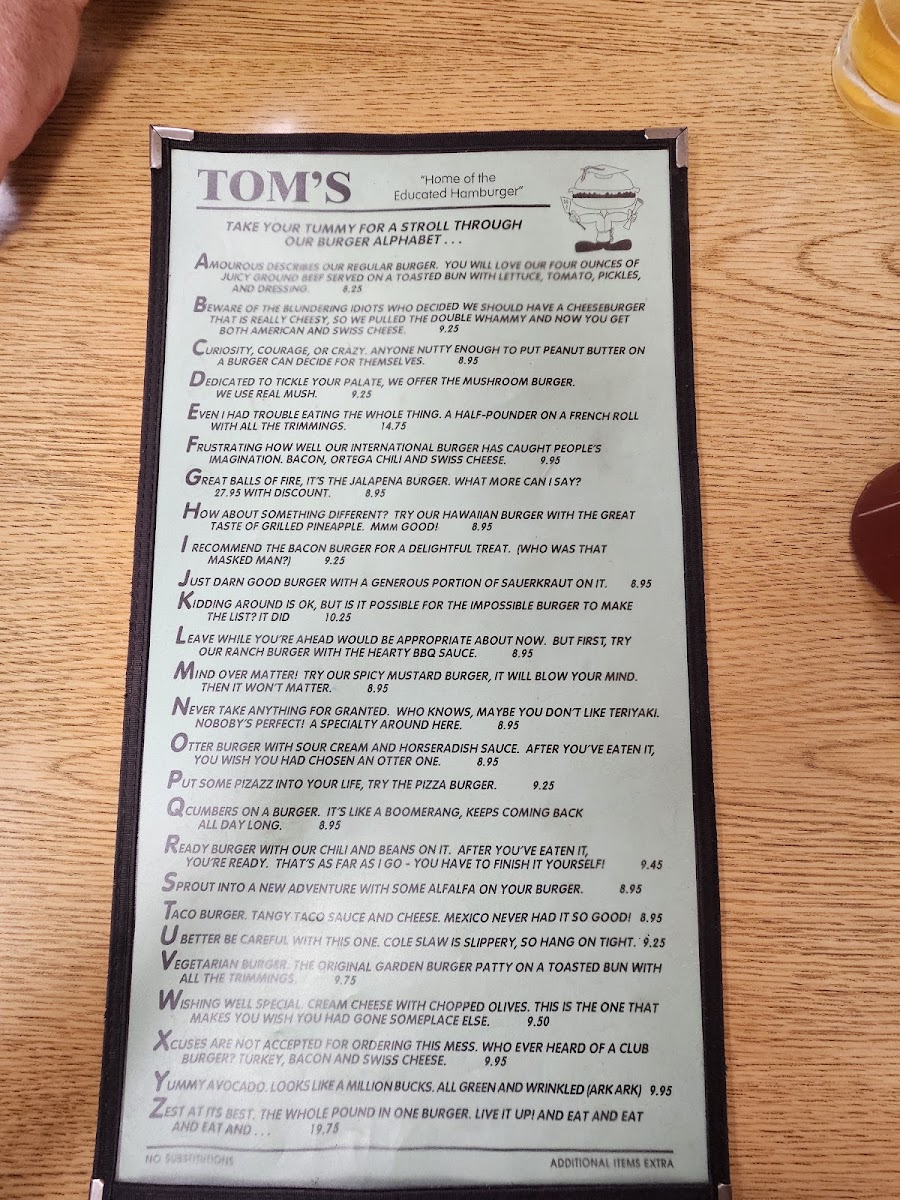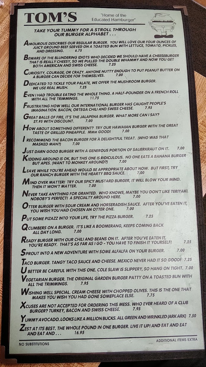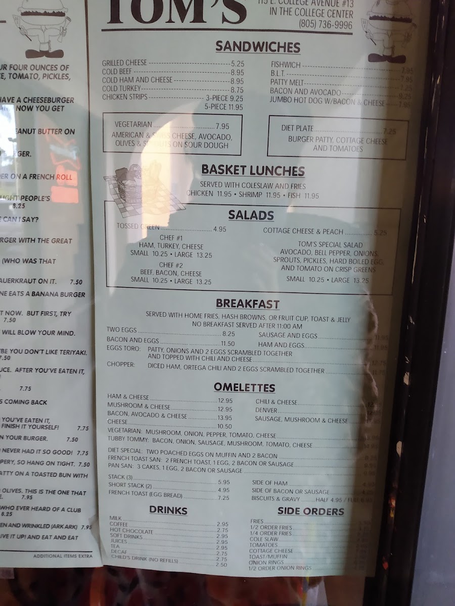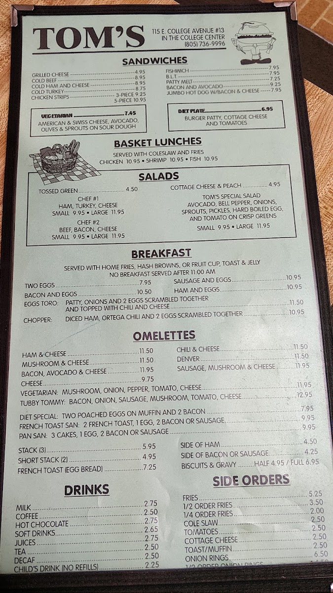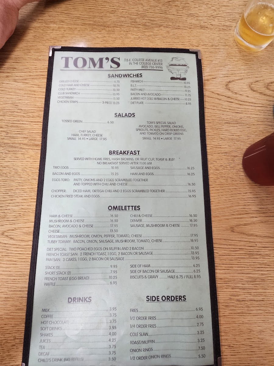 Tom’s offers a straightforward and inviting menu centered around classic American diner favorites, designed for relaxed meals any time of day. The focus is on simple, satisfying dishes that suit casual gatherings, quick lunches, or leisurely breakfasts.